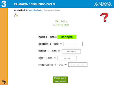 Los aumentativos son palabras que indican un tamaño mayor. Se forman añadiendo a las palabras las terminaciones: -ón, -ona, -azo, -aza, -ote, -ota.